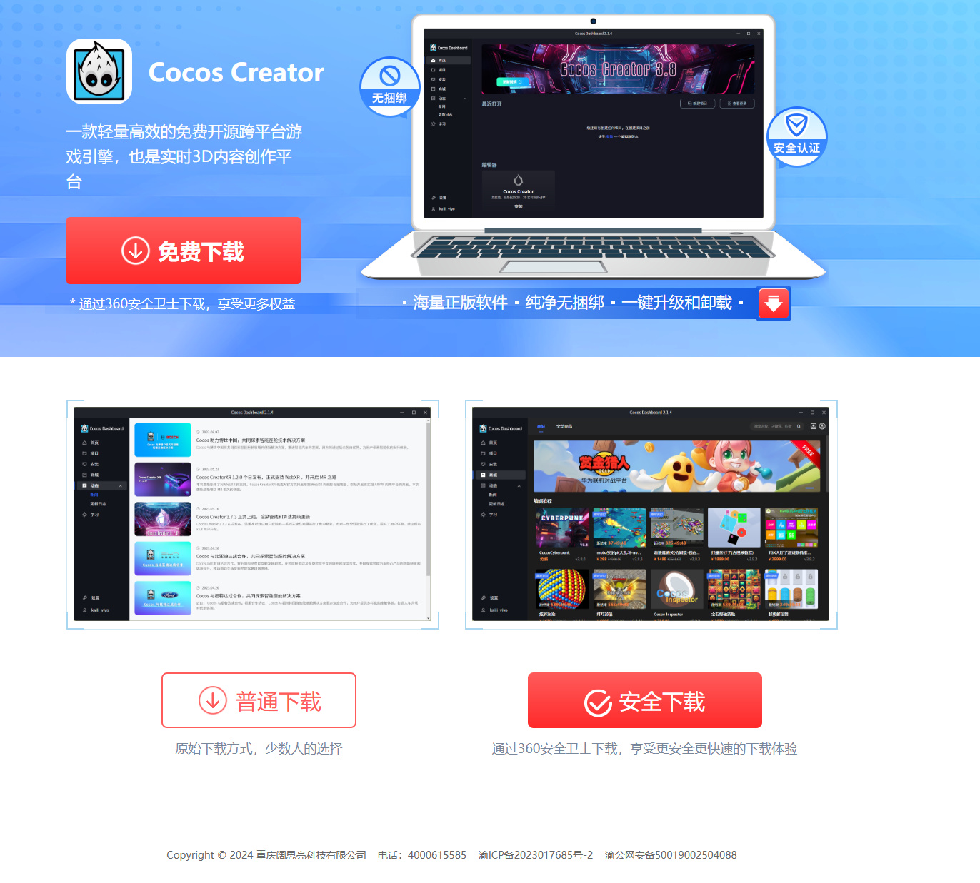 给cocos设计的界面还挺好看,有心了,虽然可能是通用模板,但是这个钱也要恰也是无所不用其极