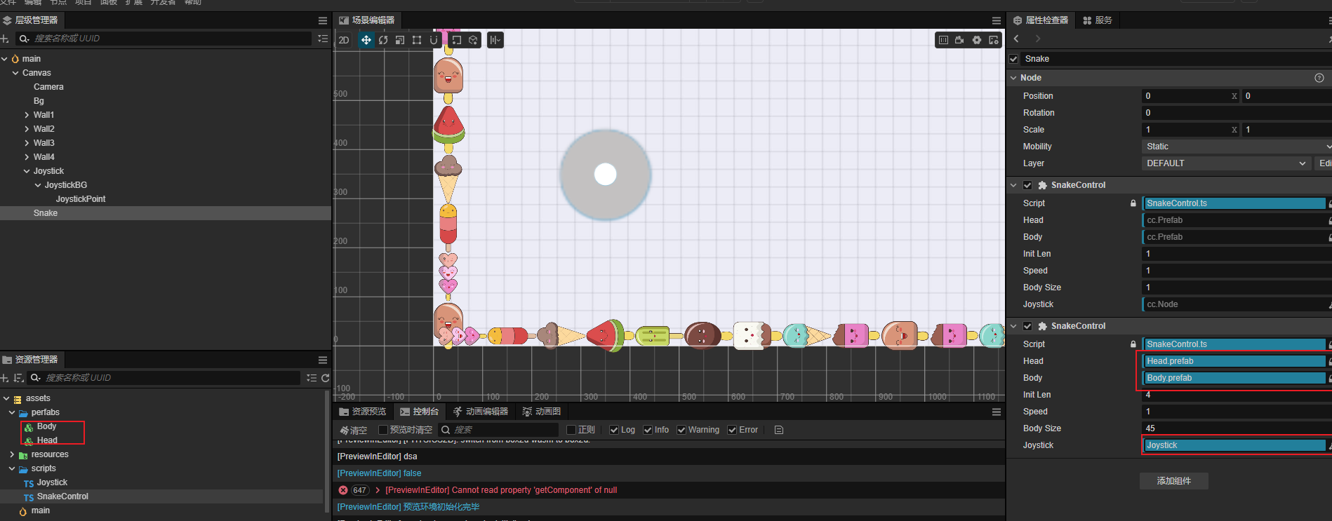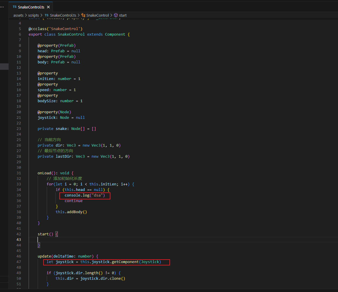 为什么代码中的循环第一次运行时 head为Null成立 还有下面的 this.joystick 为啥为null 我真的不知道什么原因了 新手也不知道去哪里求助