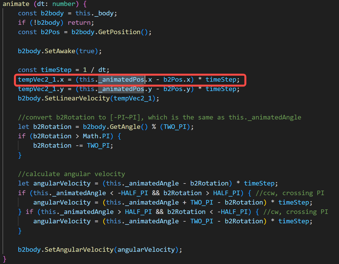 个人理解这个_animatedPos是初始位置,用来和预期位置做插值的,但是_animatedPos拿的却是当前速度,是不是拿错了。
