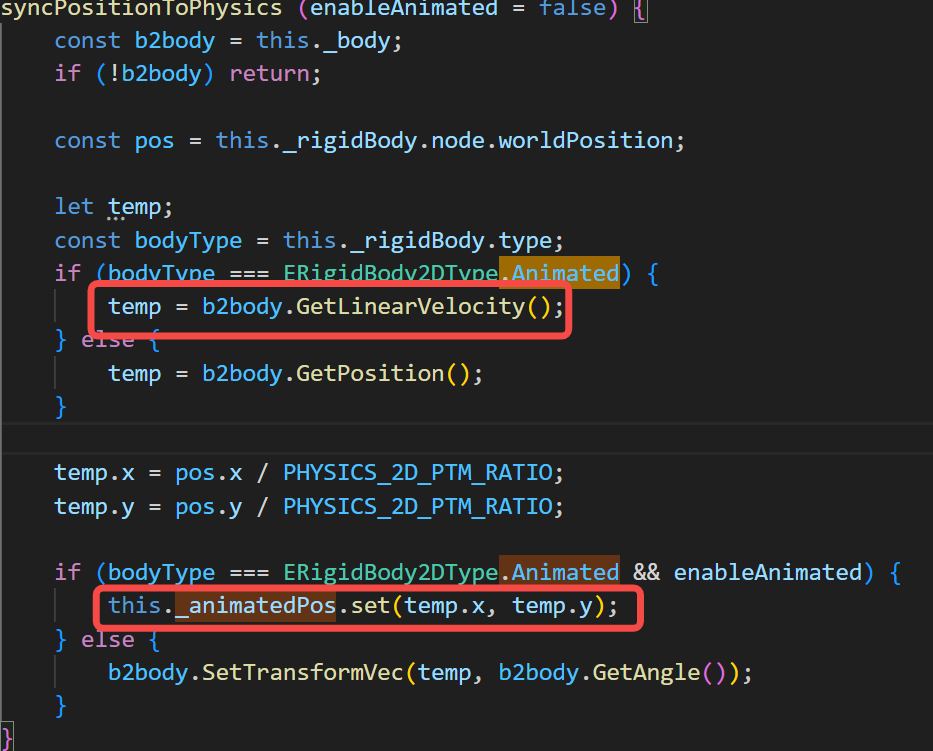 在rigid-body.ts文件中syncPositionToPhysics方法中关于Animated的处理是