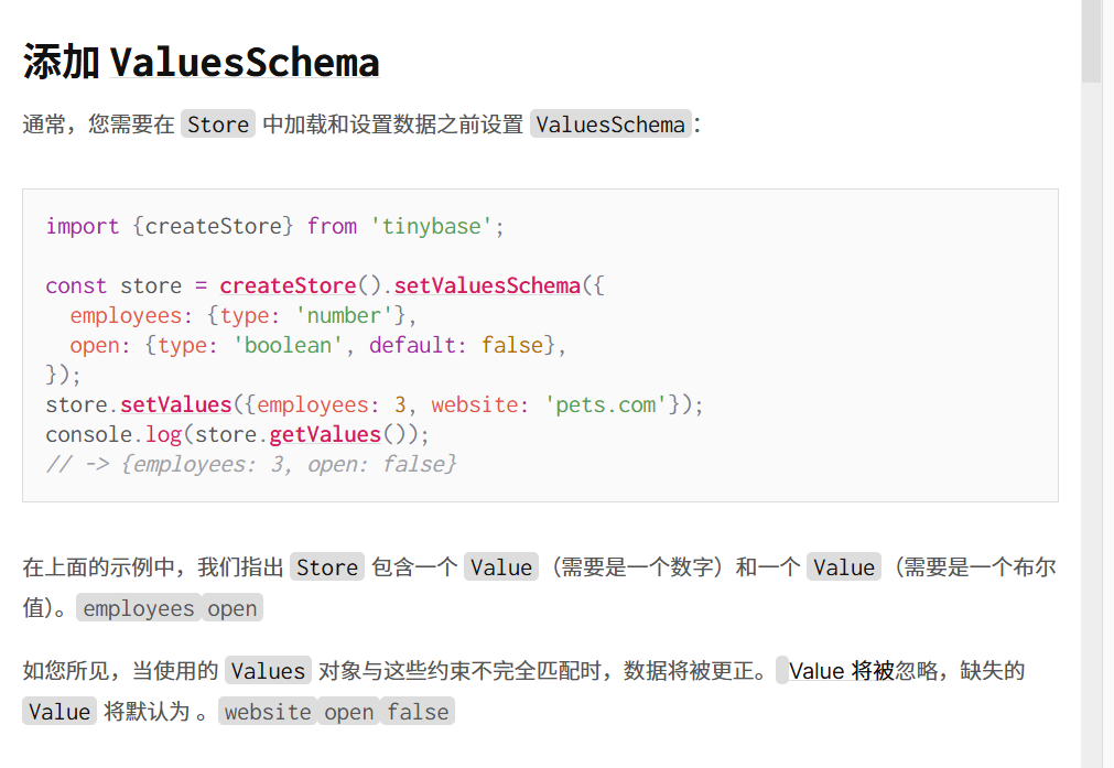 有的,我例子里没有体现。tinybase默认类型是Cell,也就是string | number | boolean | null。如果需要具体指定类型,参考代码如下。