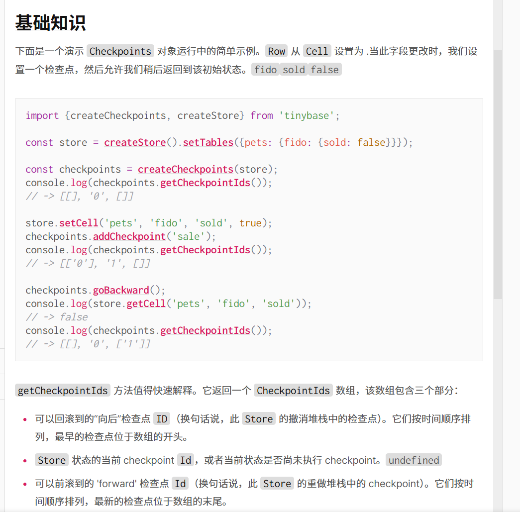 假如我需要做一个主角可以操控时间的游戏,也就是可以回到过去。如果用tinybase可以的Checkpoints实现,具体效果可以看官方案例。