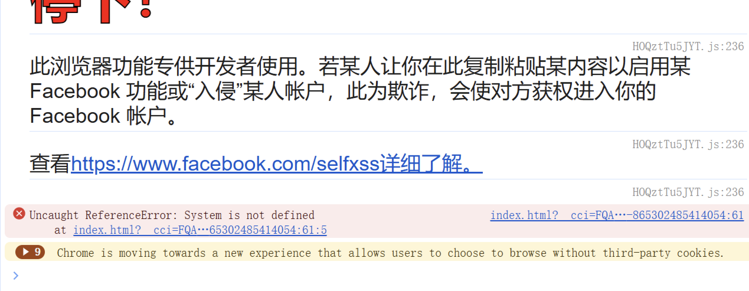 理论上不应该的。facebook 的环境是基于 webview 的,html 页面如果有加载 src/system.bundle.js 不应该出现 System 找不到的情况,我们测试并没有复现出这个情况。可以继续留意一下此问题。