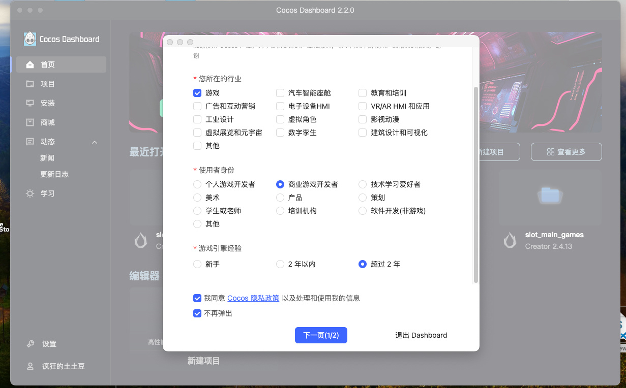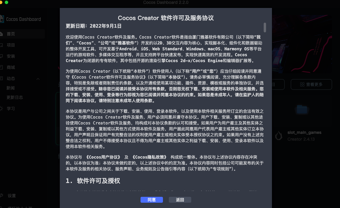 Cocos Creator 软件许可及服务协议每次打开项目是都要弹出,