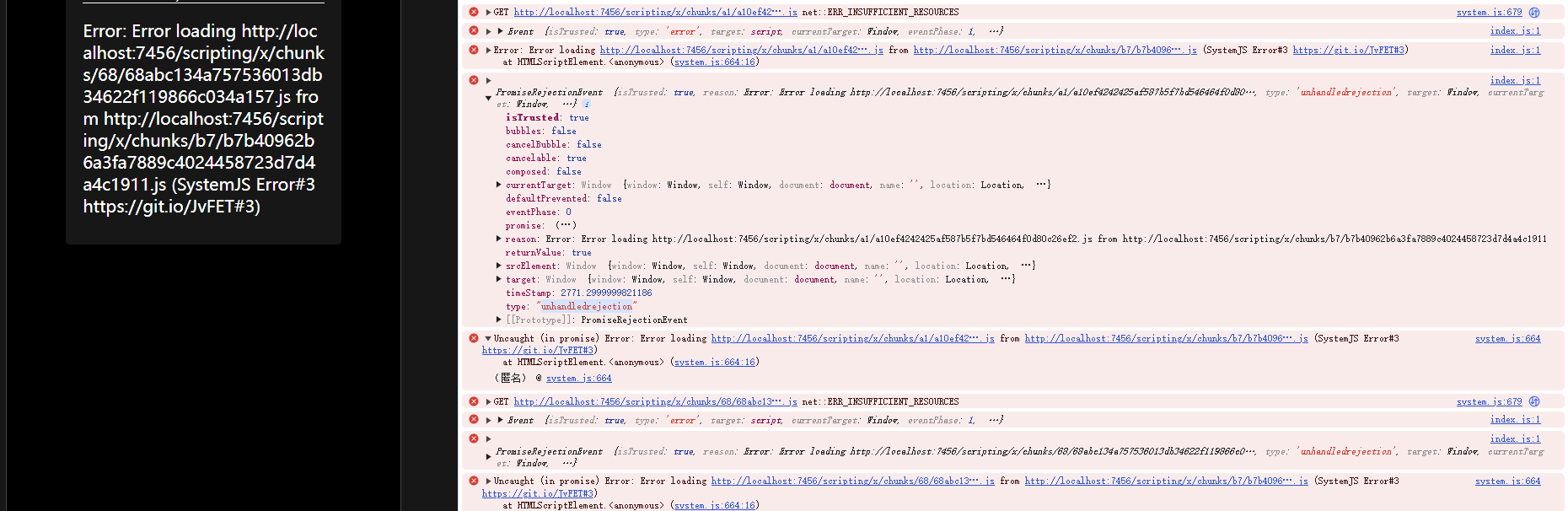看了下自定义引擎引起的,system.js在预制体实力化的时候中断promise抛出错误。具体问题无法定位,看着是自定义引擎导致的。也不是我写的,无法维护。