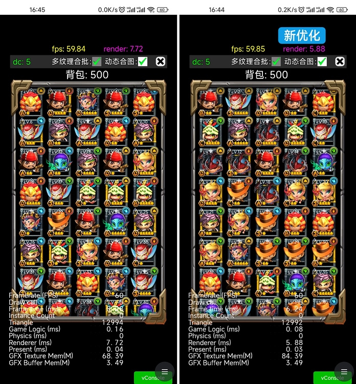 iPhone12 微信小游戏,用户实际项目测试数据,测试了两版(没使用前,我得翻下)