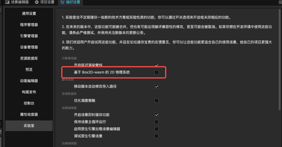 从 385 开始,我们将 基于 box2d-wasm 的选项,转移到裁切模块了,它不再是一个实验性功能。