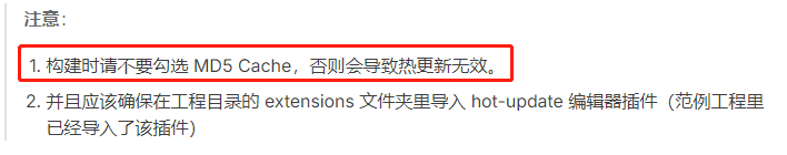 3.8文档热更新教程:点这里跳转 说构建版本时 说勾选选 MD5会导致更新无效。