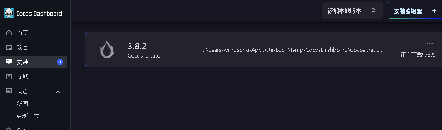 在 Cocos Dashboard 下载安装编辑器,下载完了,弹出一个安装失败