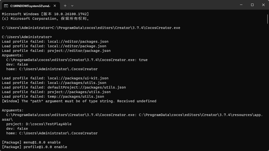 Cocos3.7.4 打不开项目 一直卡在正在加载资源