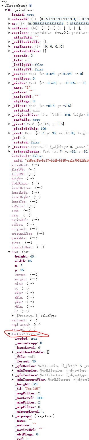 用temp接收一下splice后的结果,都是SpriteFrame……,就是赋值给Component后就不对了。直接从spriteFrame数组里取也可以,太奇怪了。