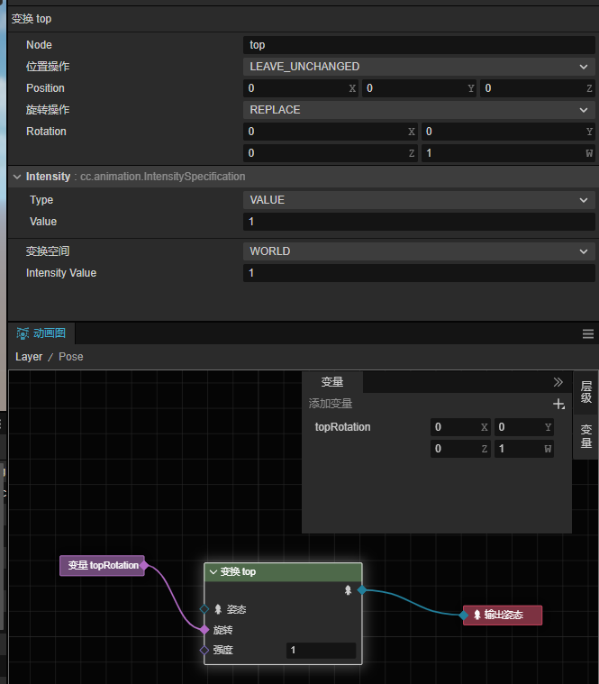 - 假如要改骨骼旋转,就需要在变量里添加一个变量,类型为四元数用来作为变量输入