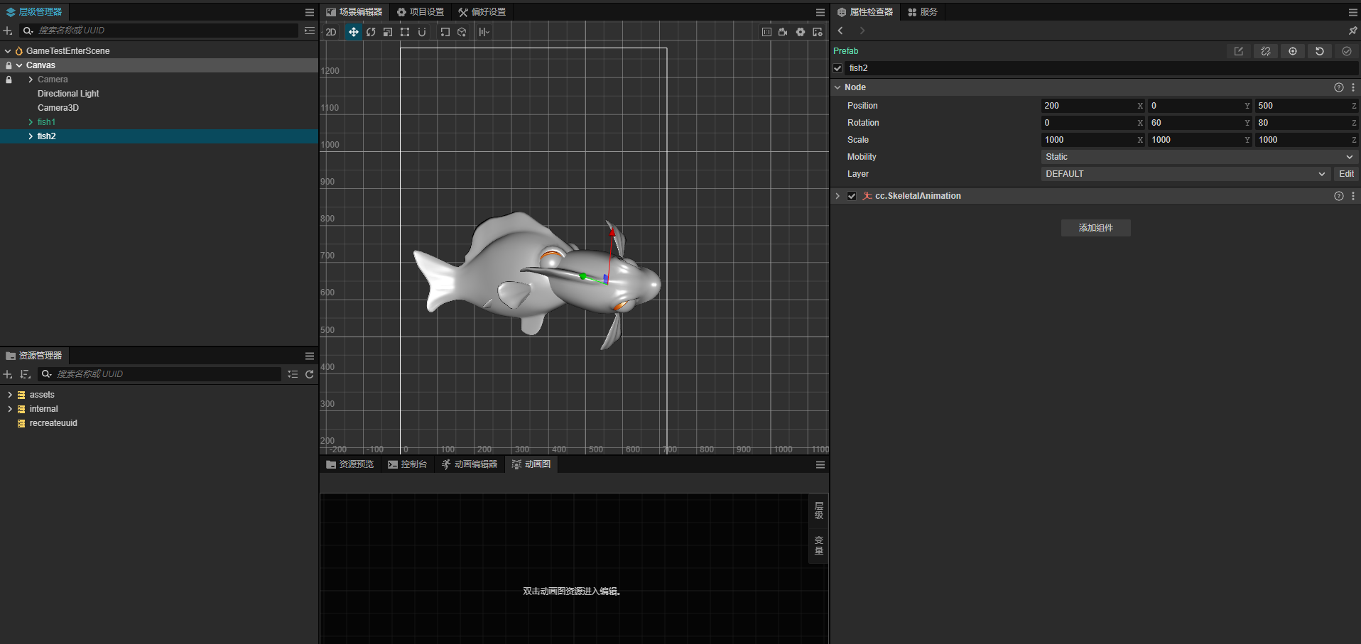 但是场景有几十条这样的鱼的话,调整z坐标感觉不现实