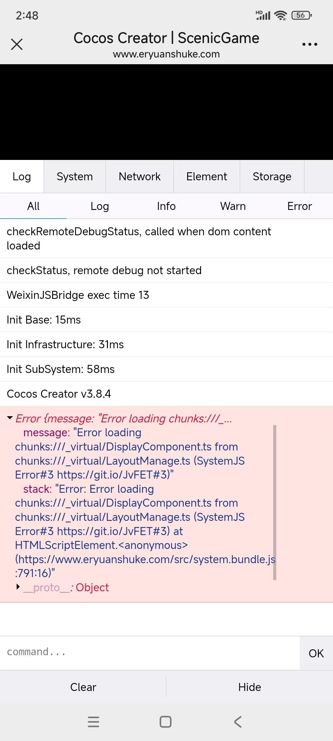 打包成网页版本的小游戏,放在服务器上,经常出现这个错误,网上也查不到原因,查看网络请求都正常,这是为什么?