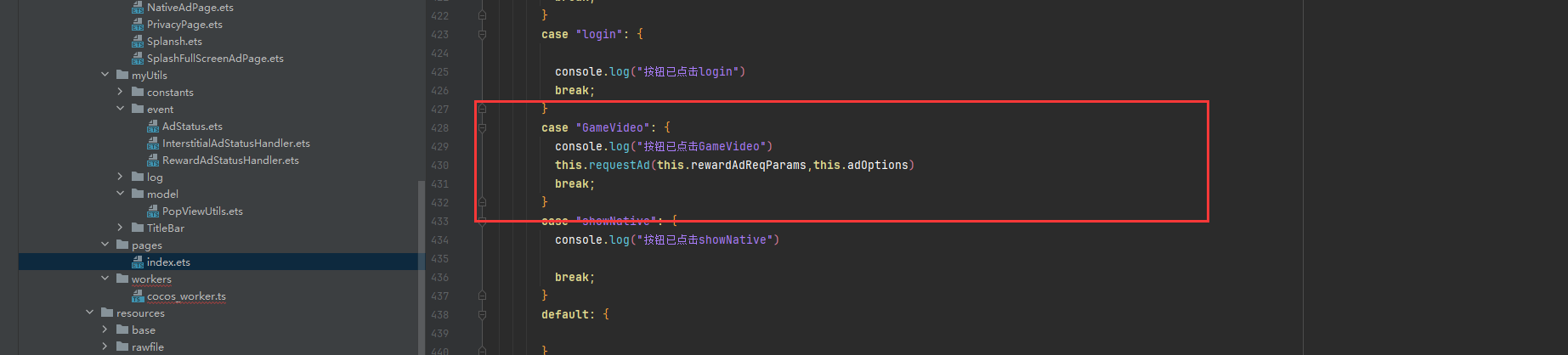 系统接受到GameVideo 然后调用激励广告 监听播放结果