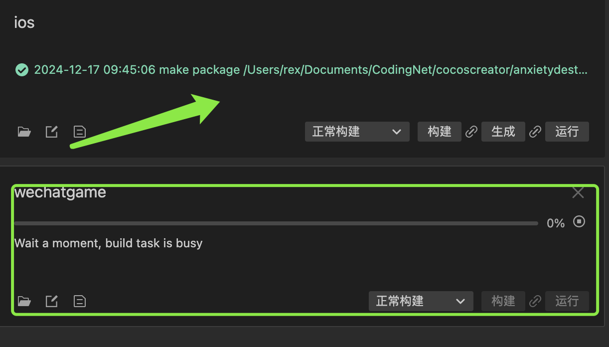 上面在构建,然后点了下面的提示要等待,但上面的完成了,下面的也点不了