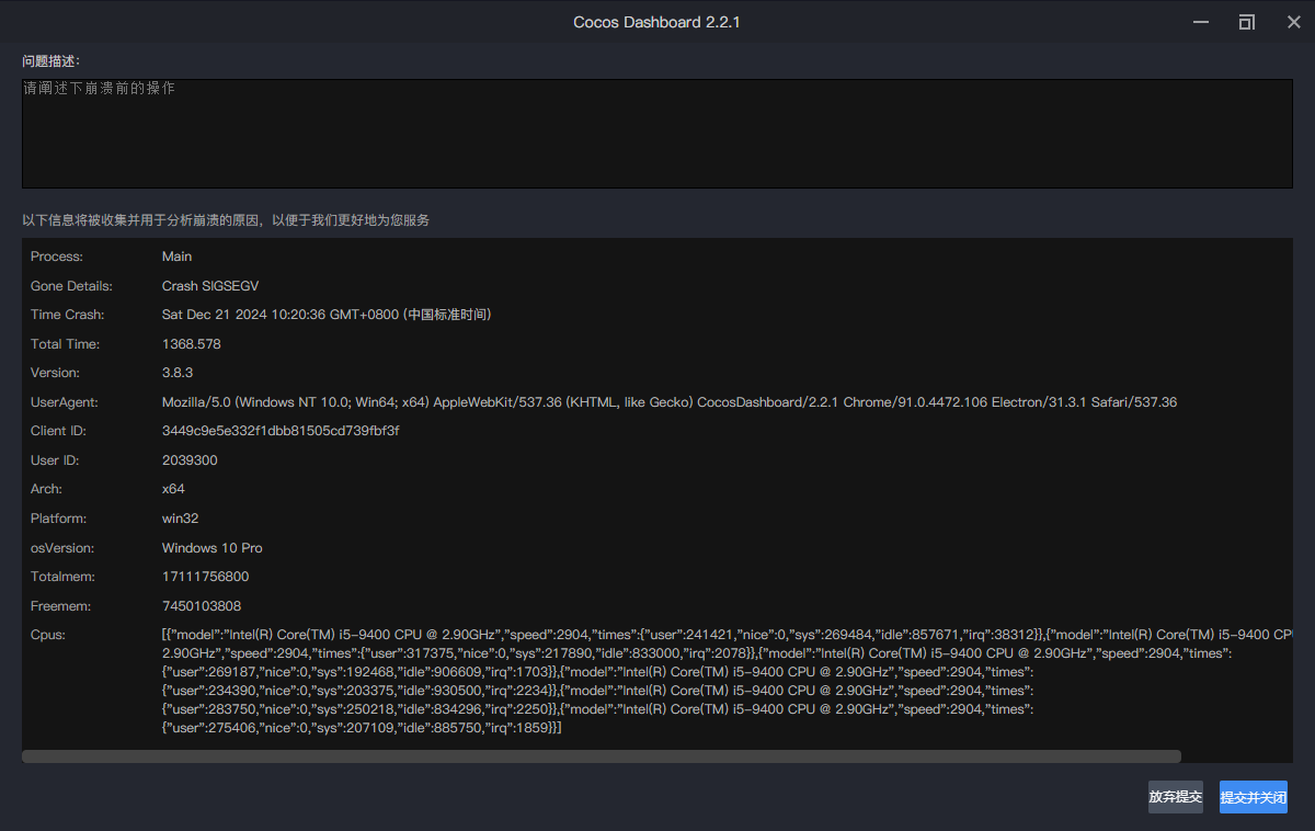 通过 cmd 打开 dashboard,然后再打开项目,看看 cmd 那边有什么日志信息