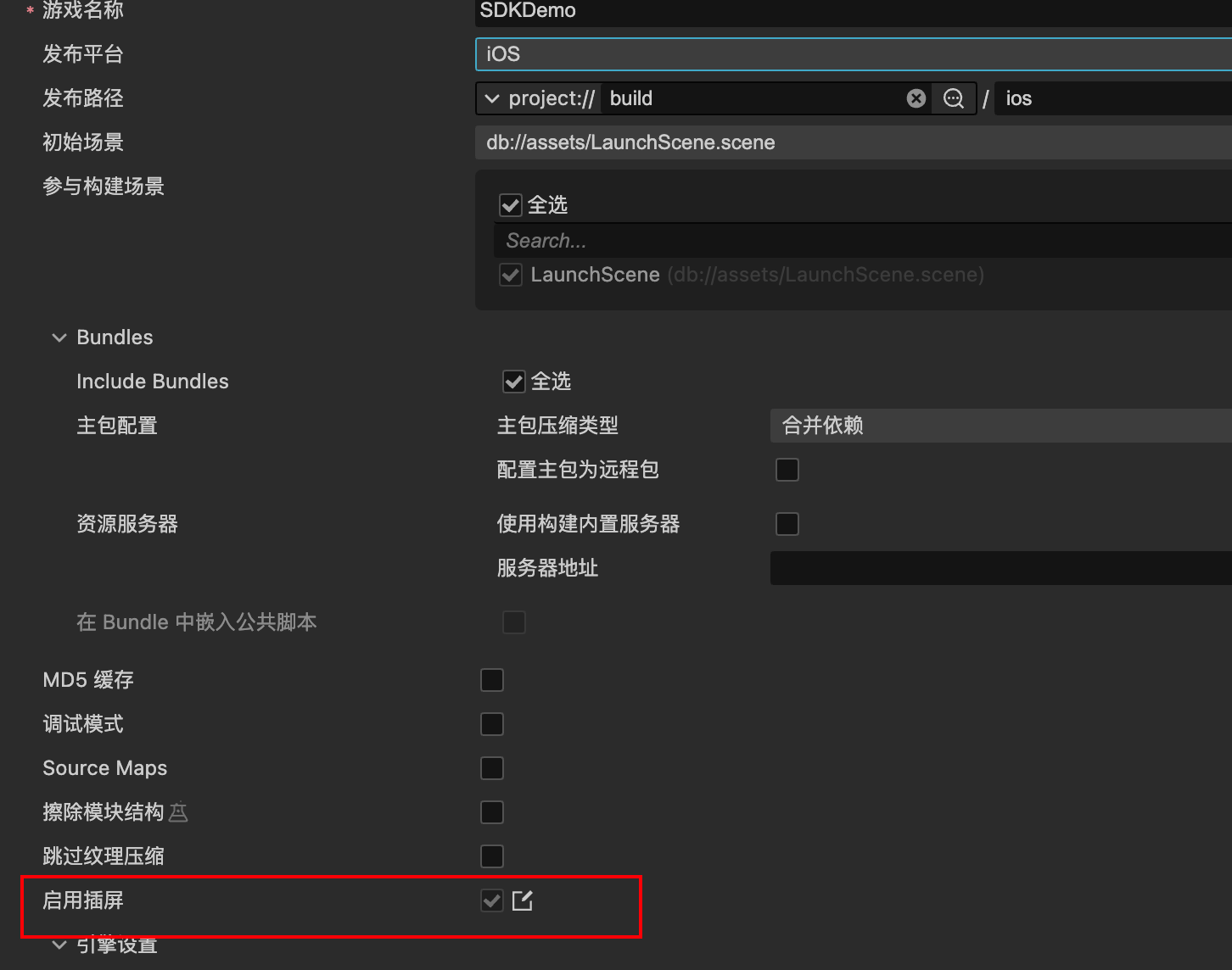在iOS的配置中,启用插屏是直接就模式不可选择状态,强制开启插屏吗