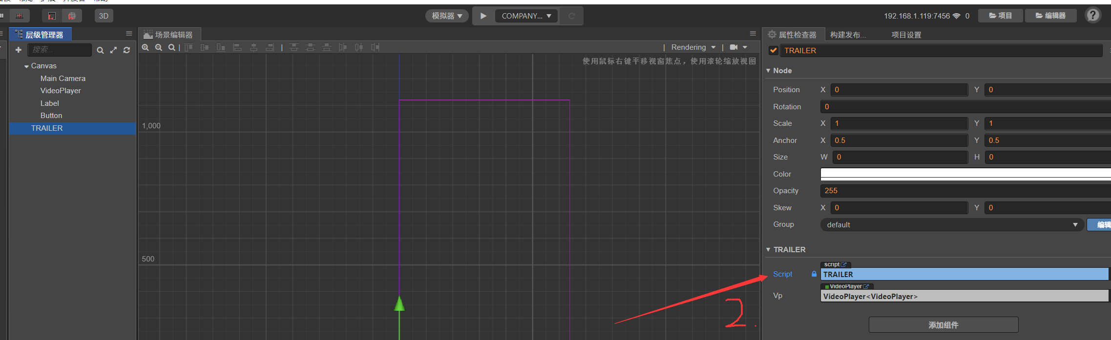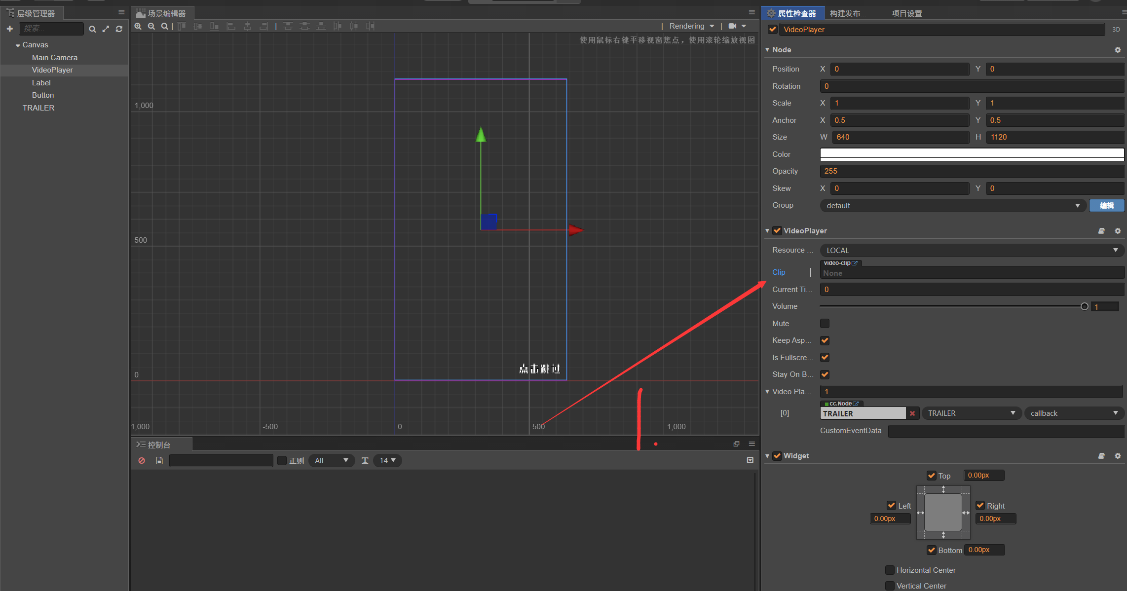 第一步 视频播放组件VideoPlayer的clip要留空,不提供本地视频,要在代码里给