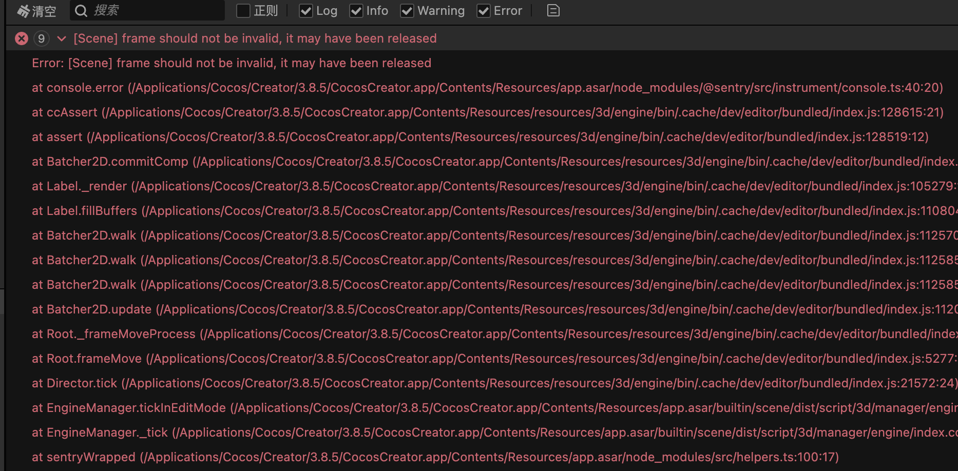 貌似使用了已经被 destroy 的 spriteFrame。