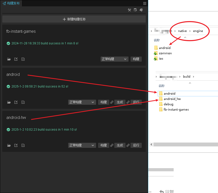 构建发布两个安卓,build生成两个不同的项目(文件夹),但我看native文件夹没有新增?