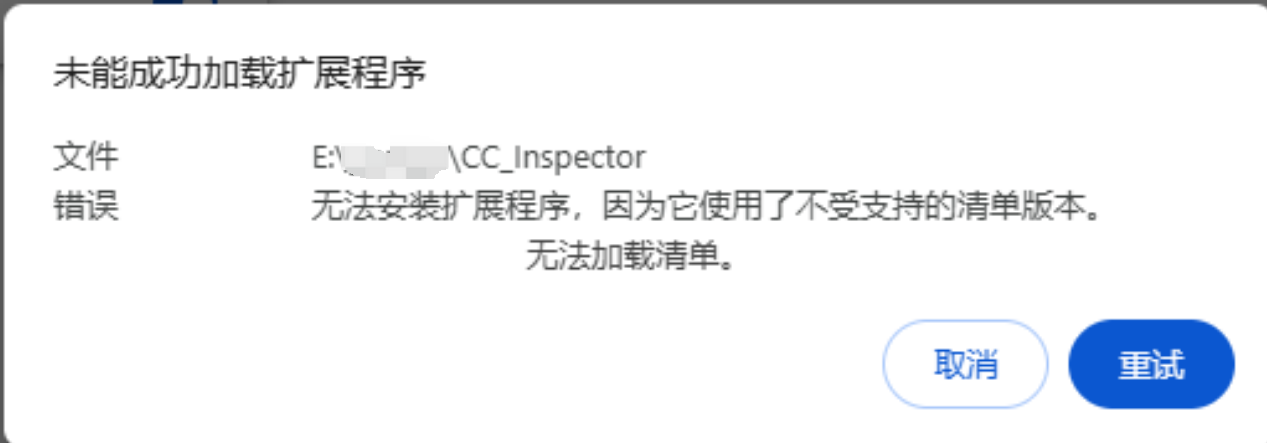 下载的chrome插件是manifest v2版本,也就是我之前写的很老版本,chrome已经慢慢废弃了manifest v2,下载最新的chrome inspector插件即可:cc-inspector | Chrome扩展 - Crx搜搜