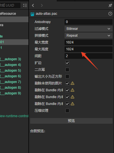 第二点自动图集可以设置大小尺寸,预览和打包后dc不一样确实是个问题