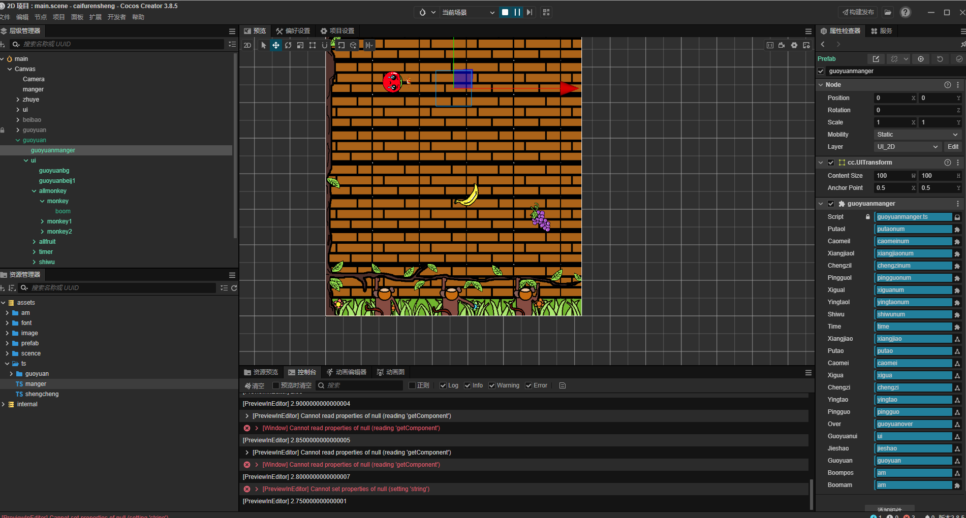 第一个报错发生的时候大概就是我在点击我游戏中的西瓜后,想让西瓜的数量+1,然后采用了单利的写法,里面写了如下增加西瓜的一个方法,报错也是在把fruit1转字符的那个地方
