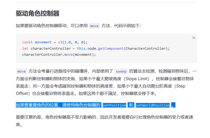 例如BoxCharacterController,使用 setWorldPosition不行。比如玩家掉出世界了,我想让他回到地面上,用 setWorldPosition不行。我该如何做。用move的话角色会碰到地形的下面上不去。有没有简单好用的方法。