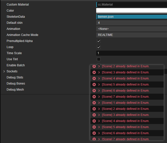 就是spine的皮肤设置为 1 2 3 … 纯数字,编辑器就报错