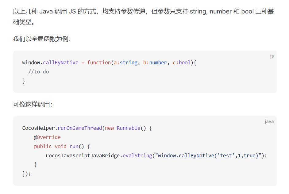 请问下,鸿蒙的文档 基于反射机制实现 JavaScript 与 HarmonyOS Next 系统原生通信 | Cocos Creator只看到有Ts调用原生的方法native.reflection.callStaticMethod,没看到类似下图java到Ts的调用方式