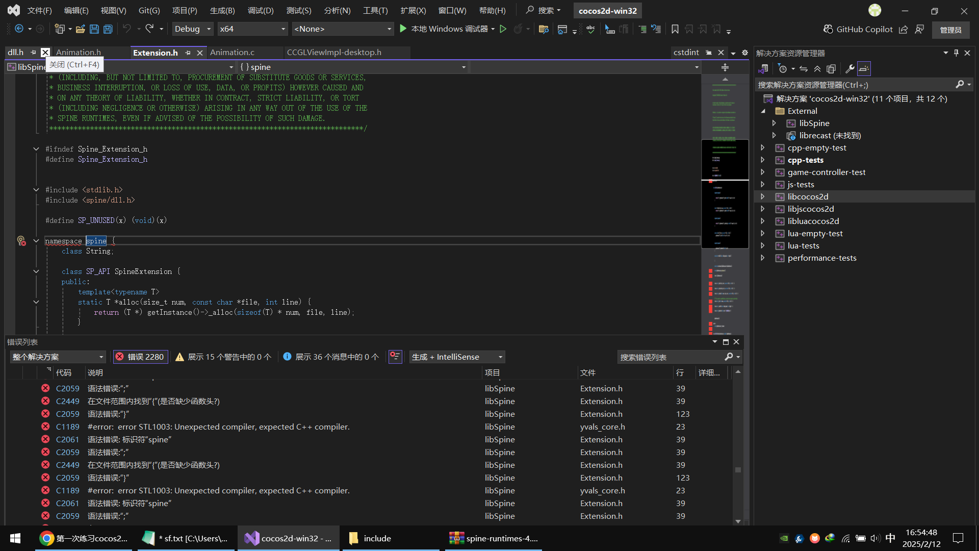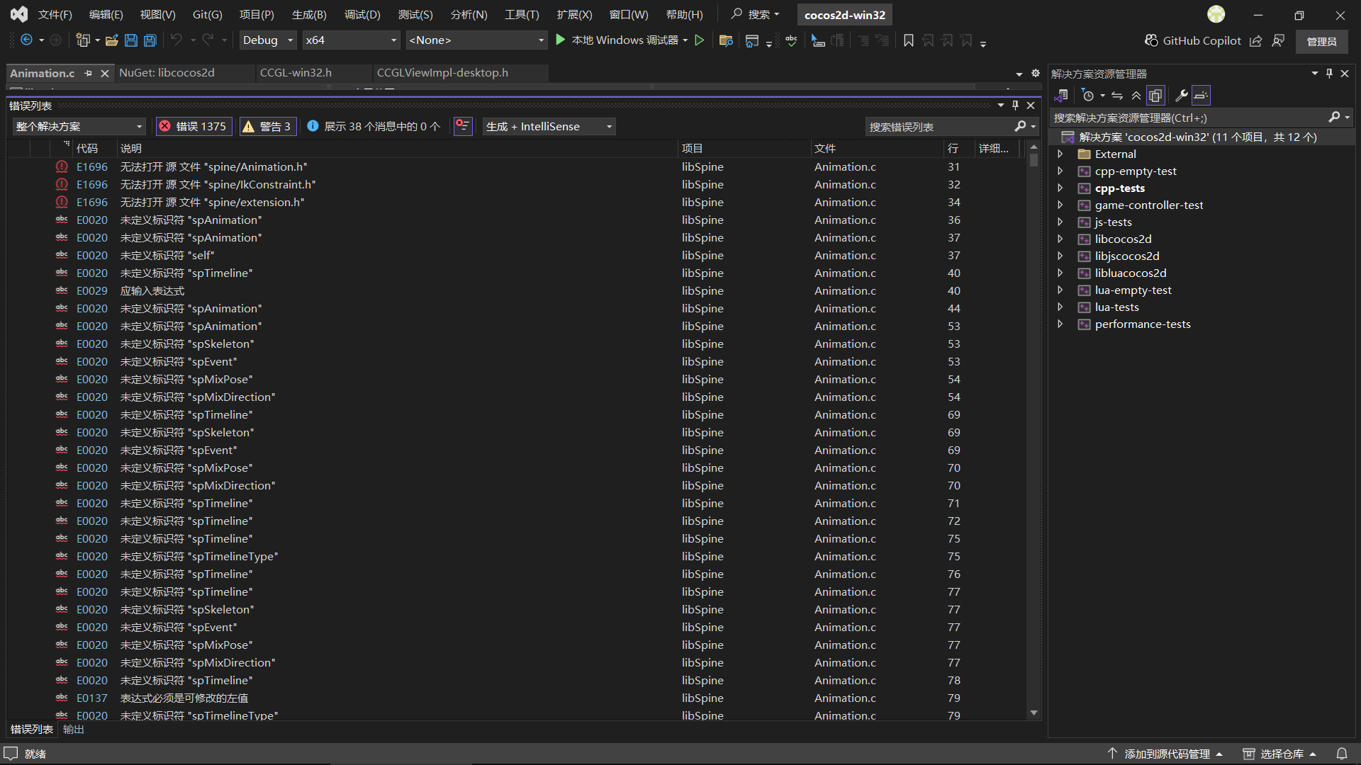 我用spine的运行时spine-cpp\spine-cpp\include添加到附加包含目录里面