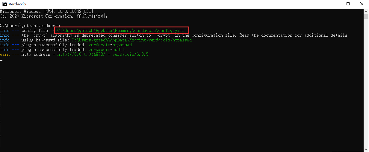config file - C:\Users\gotech\AppData\Roaming\verdaccio\config.yaml