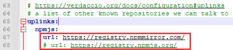 - uplinks:上游库地址,建议修改为国内的源(如taobao