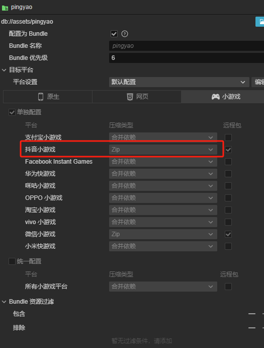 小游戏发布设置(资源服务器地址对应bundle地址)