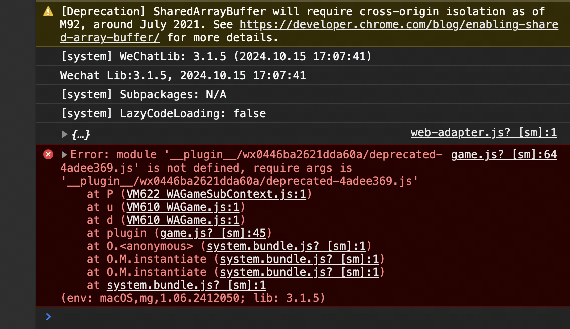 Error: module ‘plugin/wx0446ba2621dda60a/deprecated-4adee369.js’ is not defined, require args is ‘plugin/wx0446ba2621dda60a/deprecated-4adee369.js’