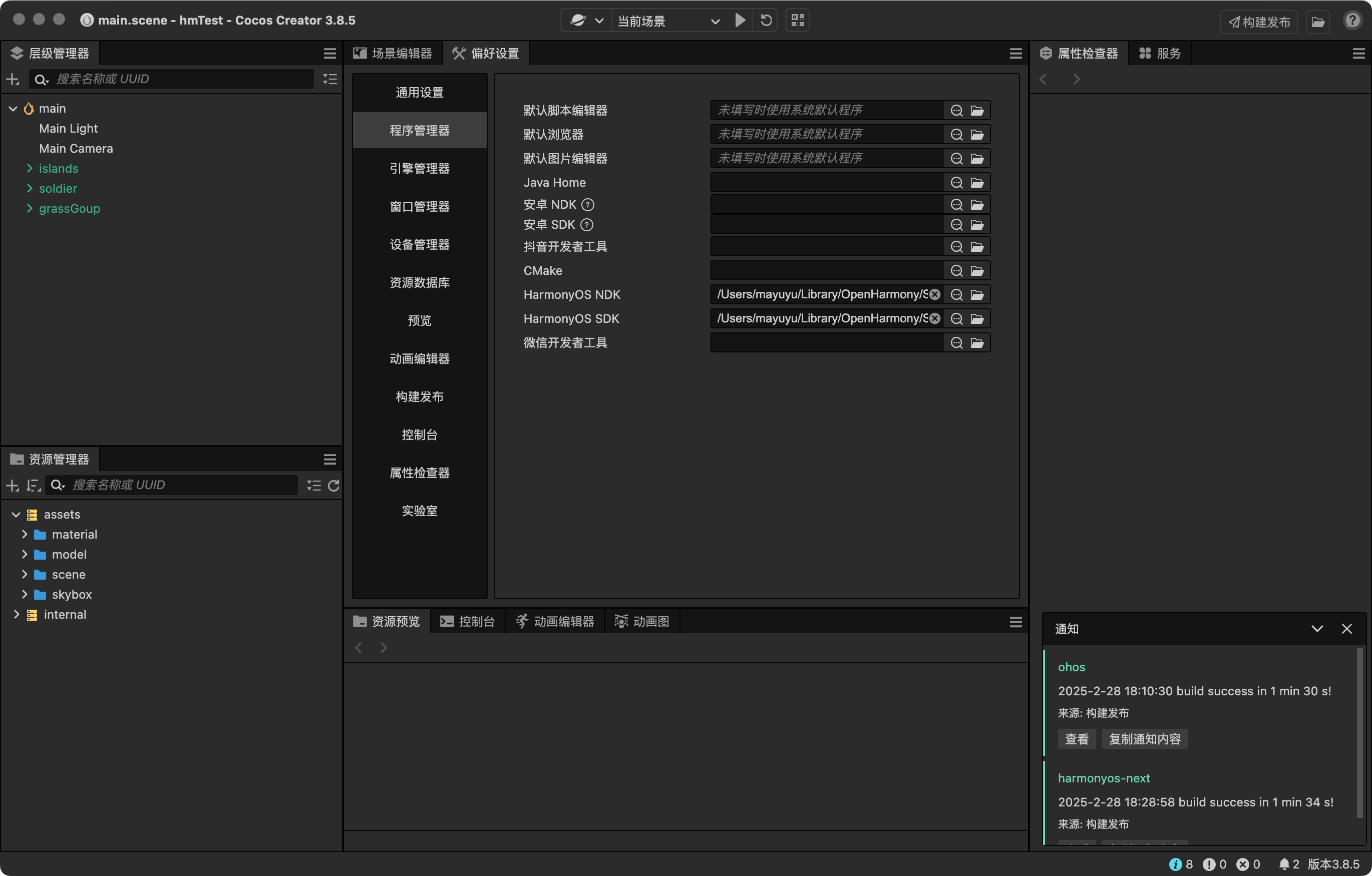 4、在CocosCreater中设置HarmonyOS NDK和HarmonyOS SDK【/Users/mayuyu/Library/OpenHarmony/Sdk/11】
