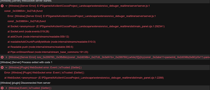 这个不是插件服务器地址,你切换了一个错误的服务器地址,你把这个缓存删掉先: cc_debuger_realtime/cache/localServer.json