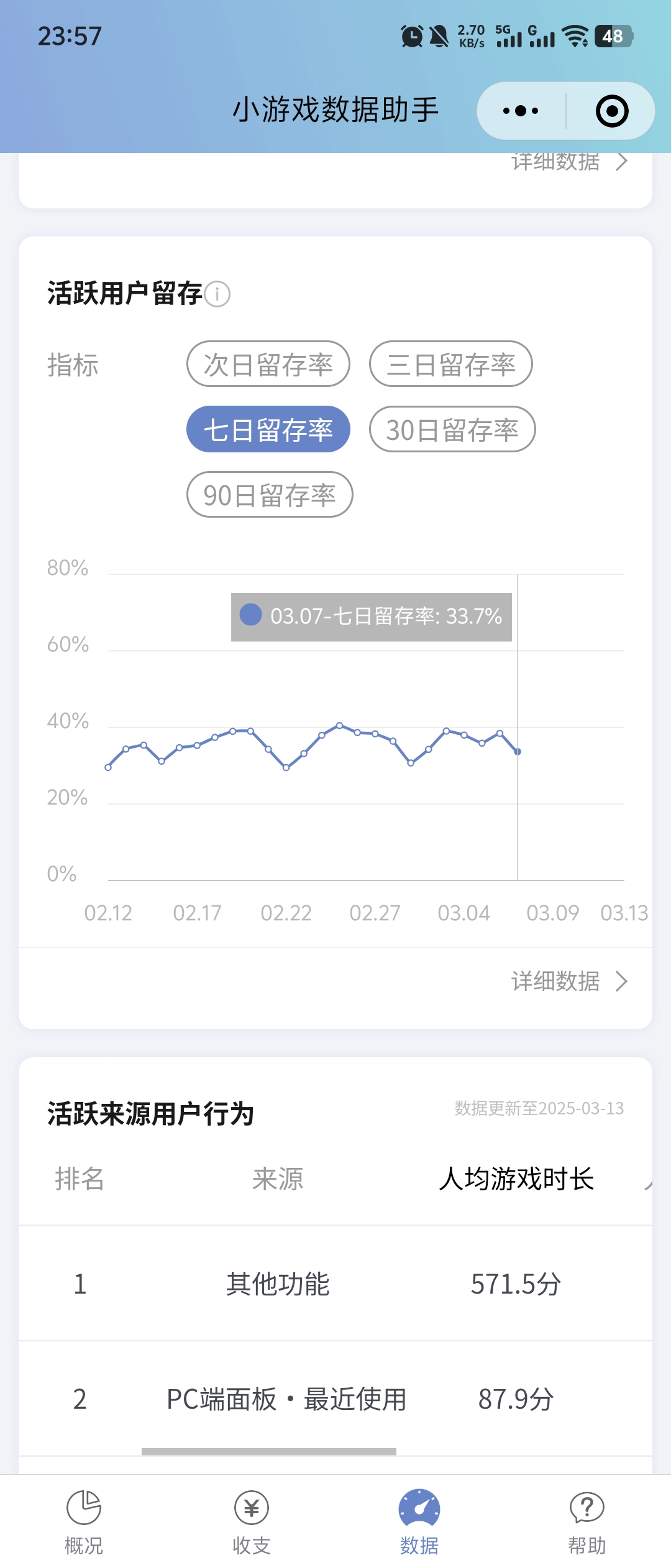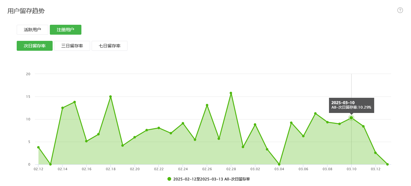 按小游戏的经验,休闲游戏注册用户15%以上次留才有继续开发的价值。