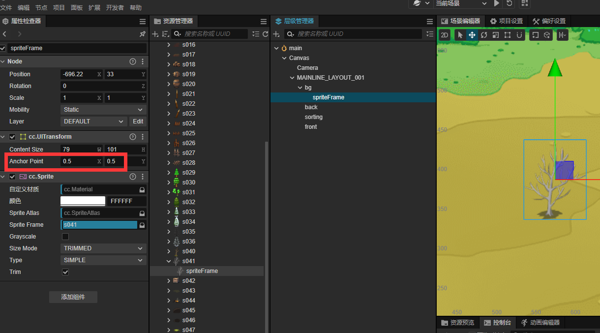 如图所示,图1修改了资源锚点,图2将资源拖入场景还是默认0.5