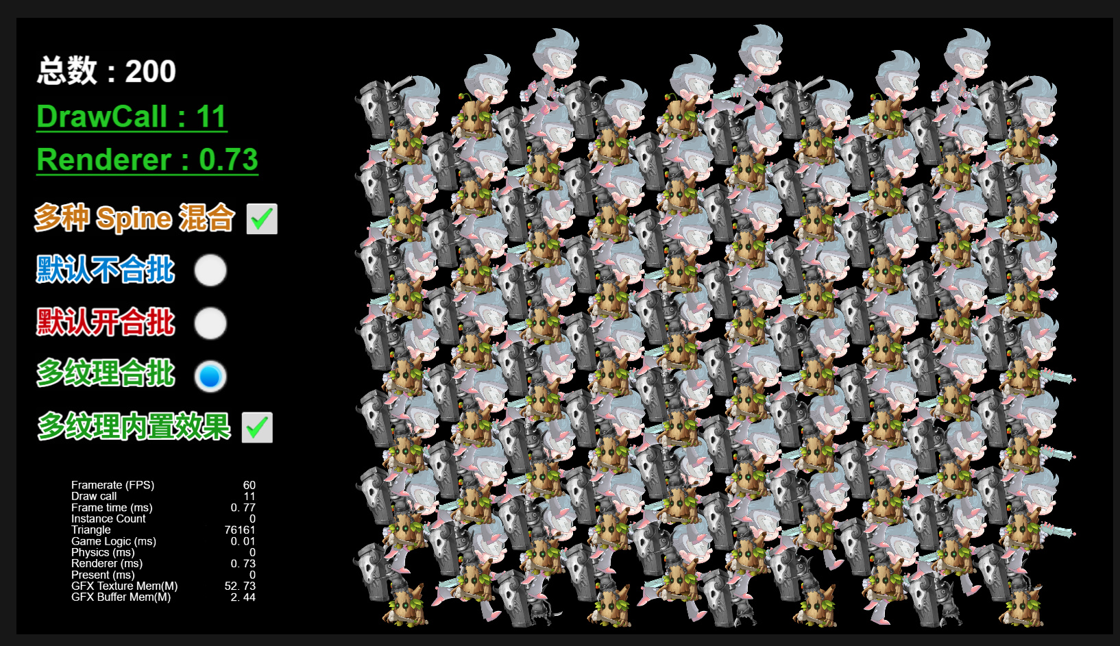 经过两多月的尝试,制作Spine多纹理合批优化,