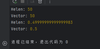 运行结果显示,向量积法不仅计算正确,而且相比海伦公式,明显减少了浮点数误差的累积。