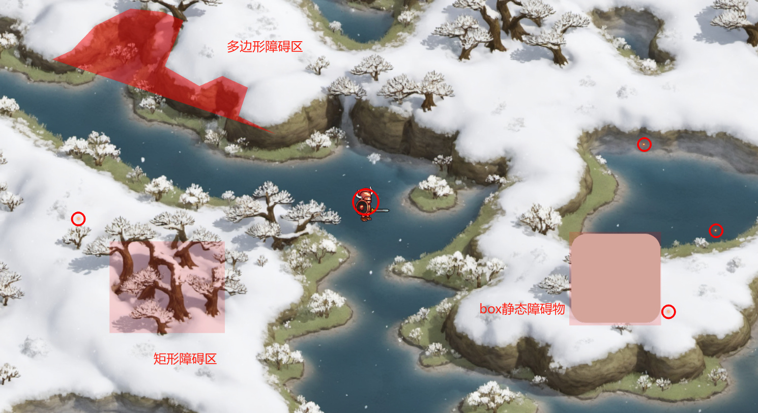 - 上述动静态障碍物、TiledMap节点都可设置为预制体,支持动态加载;