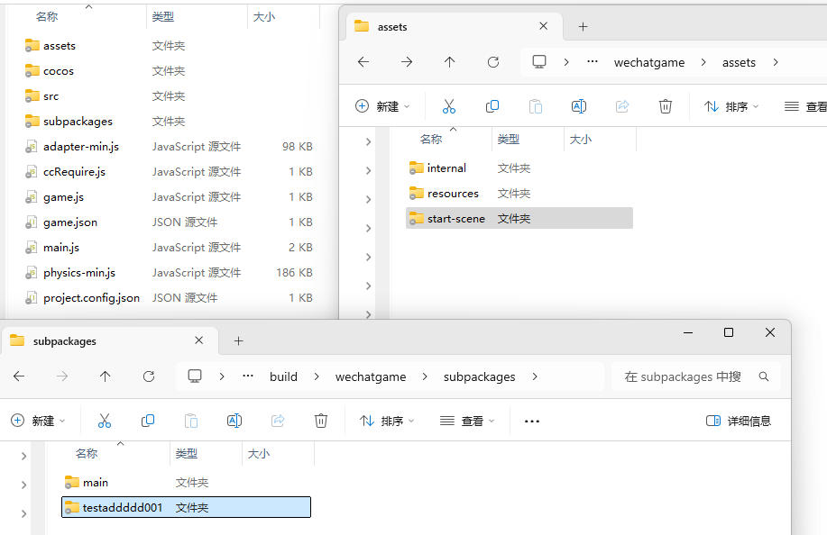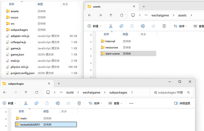 这个 wechatgame/assets/start-scene 就是代码没被分到子包里面去