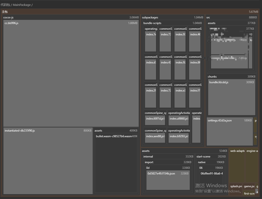 很明显,这个主要的代码逻辑也被打包到 assets 主包文件夹里面了