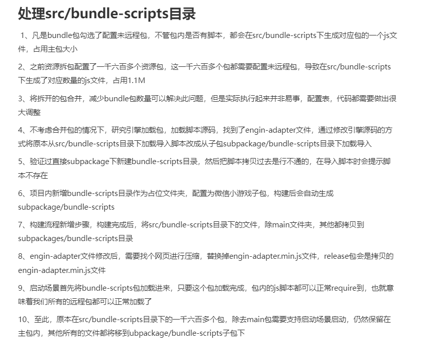 远程包内确定是没有脚本的,只是项目太大了,bundle-scripts目录其实都是远程资源包,里面没有脚本,后面我是把bundle-scripts给放到字包目录下了,改了一下这个目录的加载流程