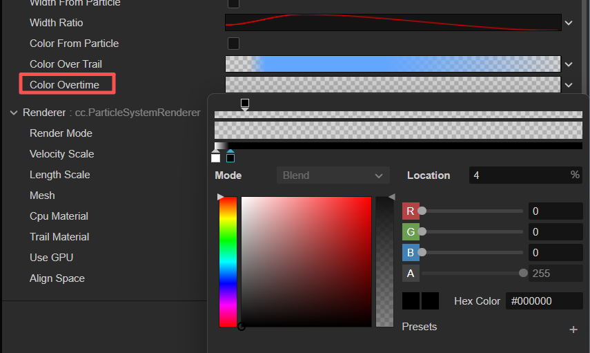 如果你要做拖尾消失,需在Color OverTime设置消失点,同时需要主模块的配合。