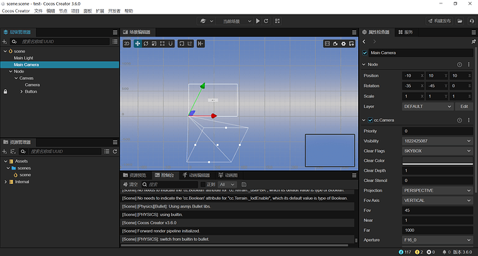 另外这个相机视锥体好奇怪,如下图远才切面明明和场景元素不在一个方向却能正常看到场景的UI元素,但当我把相机调整到让远裁切面和场景里UI元素平面的法线方向时预览却看不到任何东西了