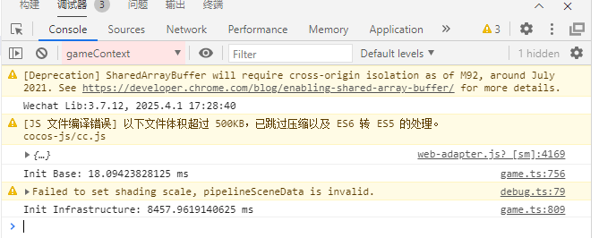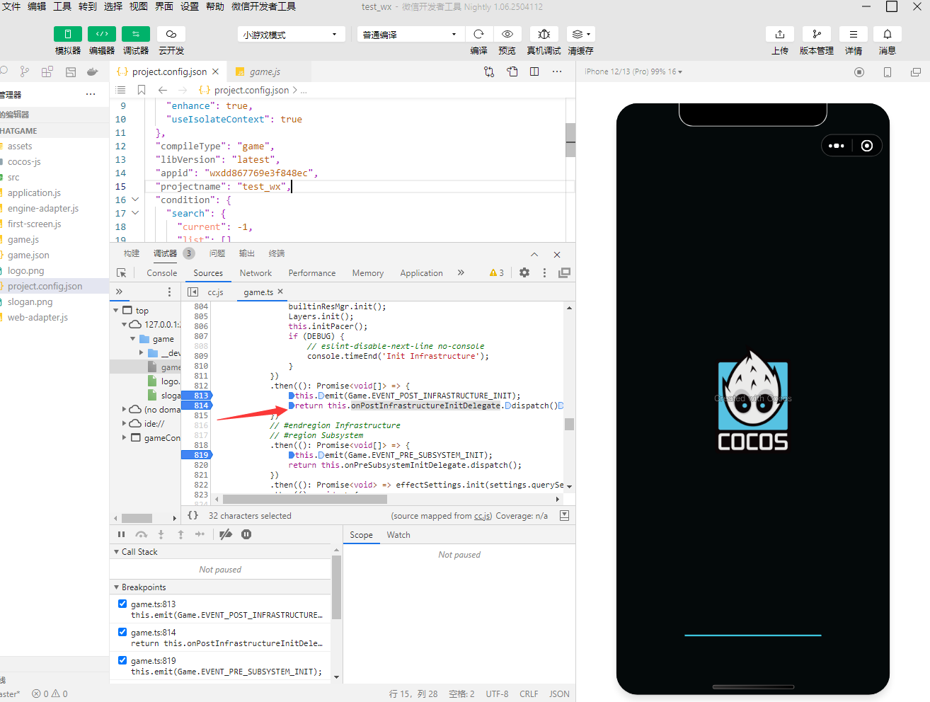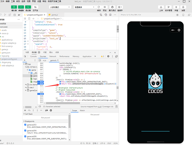 断点发现,game.ts中,执行到814行就不往下执行了,日志如下: