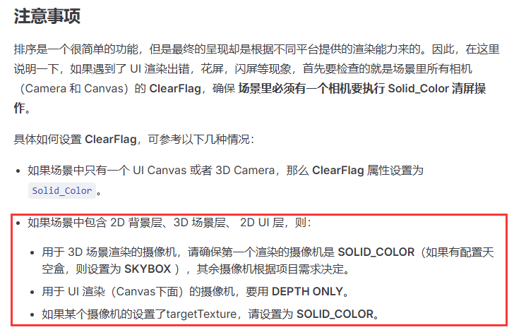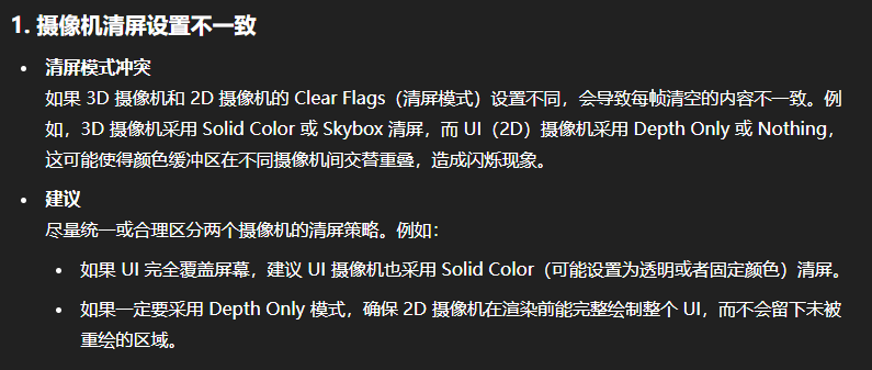 太懵逼了,如果把UI的camera设置flag是solid color,priority设置值小于等于3d层的camera的值,那么能在安卓真机显示正常,但会不定期的闪烁屏幕,闪烁期间能看到那个重影……究竟咋搞呢?